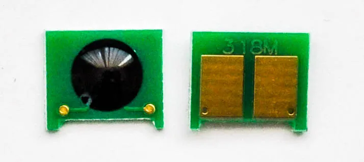 Чіп - це не велика за розміром мікросхема, в яку вшита інформація про ресурс самого картриджа, забезпечений функцією обміну даними з принтером. Простіше кажучи, завдяки чіпу апарат може порахувати кількість надрукованих сторінок. У момент, коли лічильник сторінок підійшов до кінця, ви побачите попередження про те, що картридж закінчився і його необхідно замінити, навіть якщо в бункері картриджа залишився невикористаний тонер.