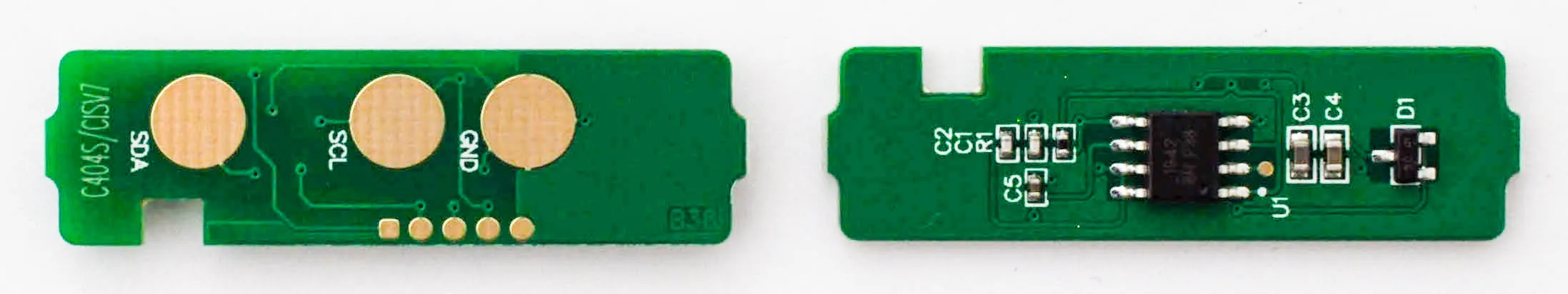 Чіп - це не велика за розміром мікросхема, в яку вшита інформація про ресурс самого картриджа, забезпечений функцією обміну даними з принтером. Простіше кажучи, завдяки чіпу апарат може порахувати кількість надрукованих сторінок. У момент, коли лічильник сторінок підійшов до кінця, ви побачите попередження про те, що картридж закінчився і його необхідно замінити, навіть якщо в бункері картриджа залишився невикористаний тонер.