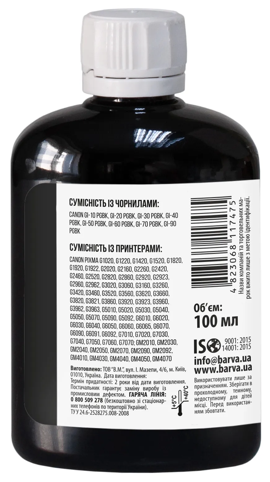 - Чорнило сумісне для Canon GI-40 PGBK спеціальне 100 мл, пігментне, чорне Barva (CGI40-743)