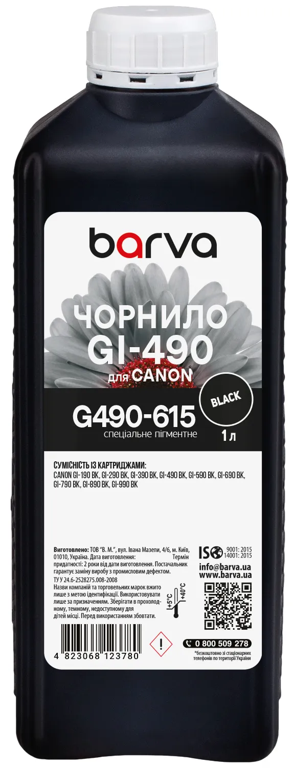 Чорнило для Canon GI-490 BK спеціальне 1 л, пігментне, чорне Barva (G490-615) опис: