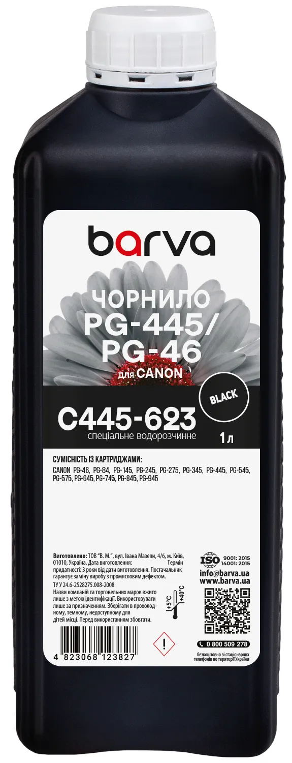 - Чорнило для Canon PG-445/PG-46/PG-84 спеціальне 1 л, водорозчинне, чорне Barva (C445-623)