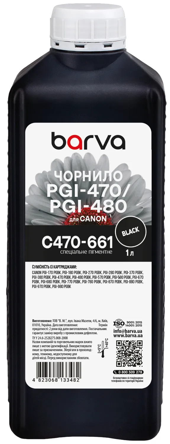 Чорнило для Canon PGI-470/PGI-480 PGBK спеціальне 1 л, пігментне, чорне Barva (C470-661) опис: