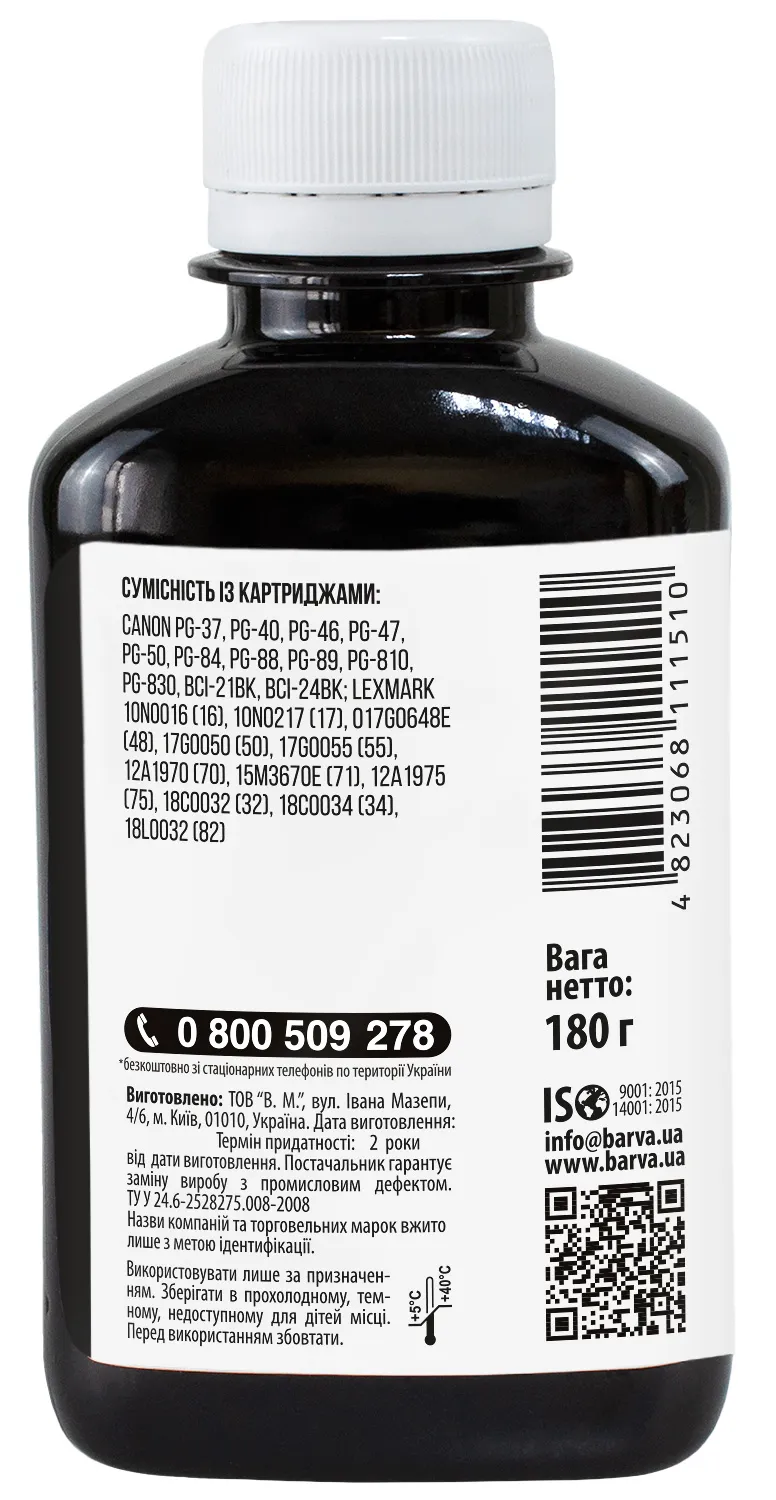 Дана фарба для принтера Canon Barva має фасовку – 180 мл: