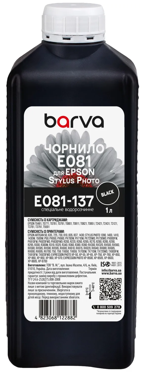 Чорнило для Epson T0481/T0801/T0811 спеціальне 1 л, водорозчинне, чорне Barva (E081-137) опис:
