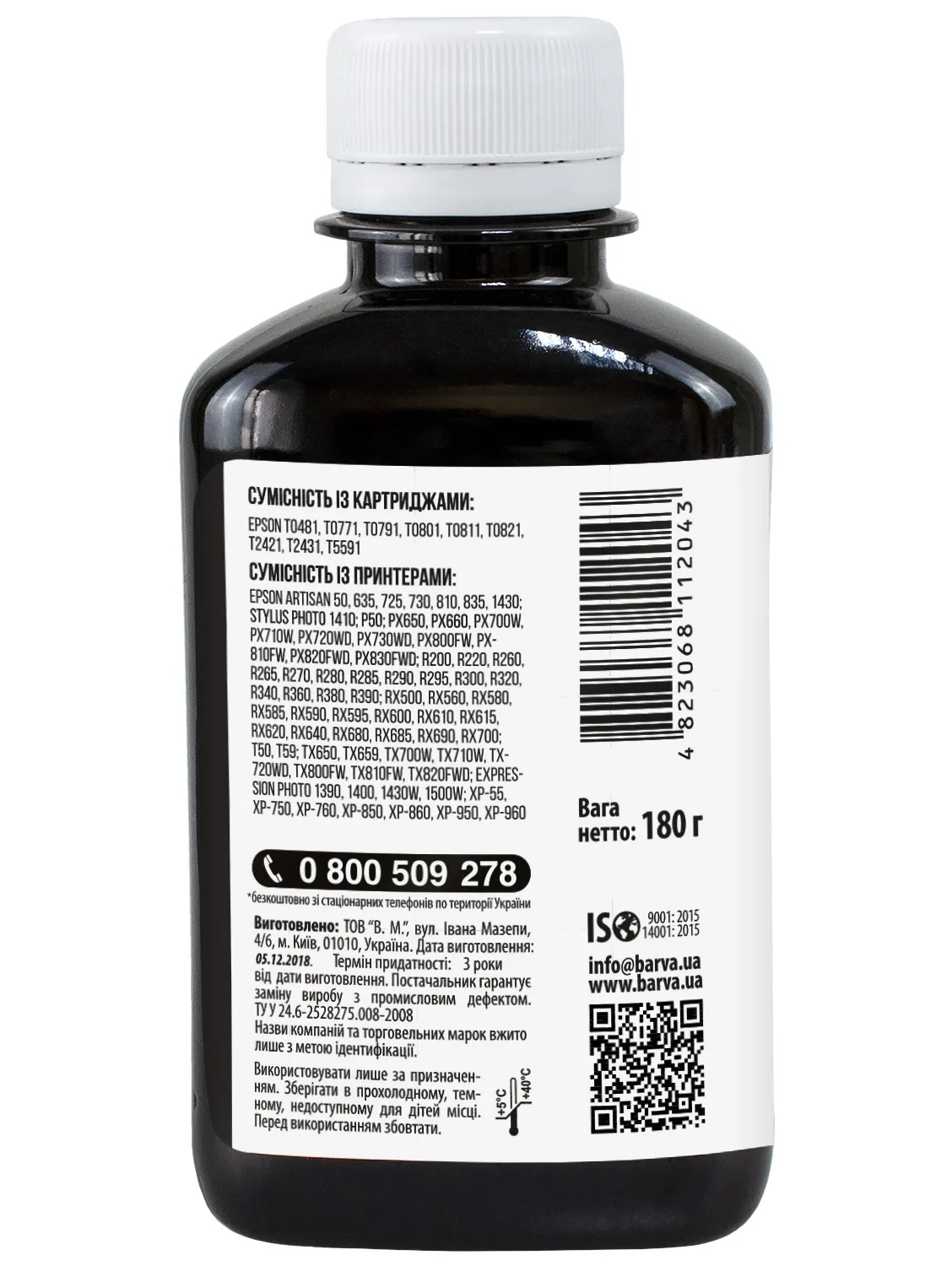 Дана фарба для принтера Epson Barva має фасовку – 180 мл: