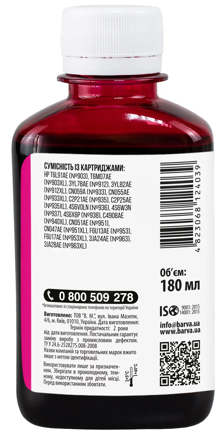 Дана фарба для принтера HP Barva має фасовку – 180 мл: