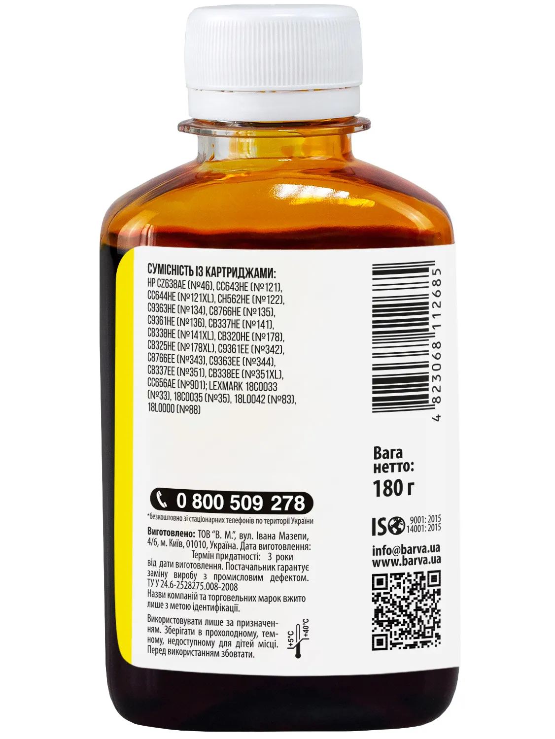 - Фасовка чорнил Barva 180 гр./180 мл буде зручною для користувачів, якім необхідно багато друкувати – в даному випадку вартість чорнил буде нижчою, ніж в більш маленьких фасовках (90 гр. або 100 мл).
