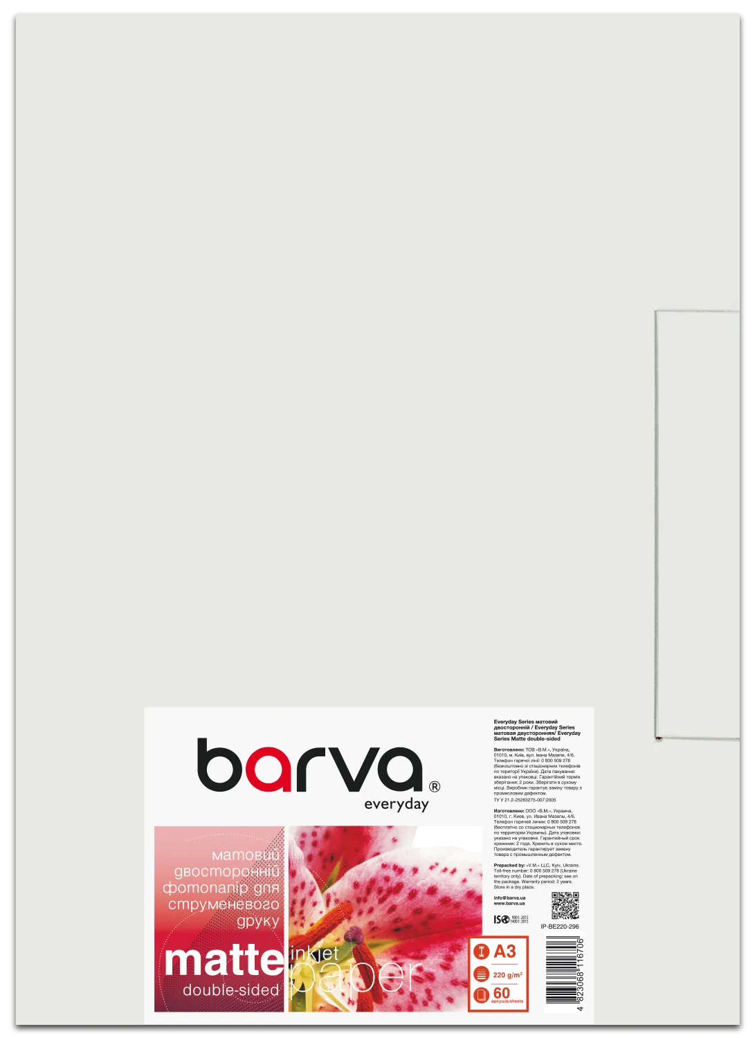 Фотопапір матовий двосторонній 220 г/м2, A3, 60 арк Everyday Barva (IP-BE220-296) опис