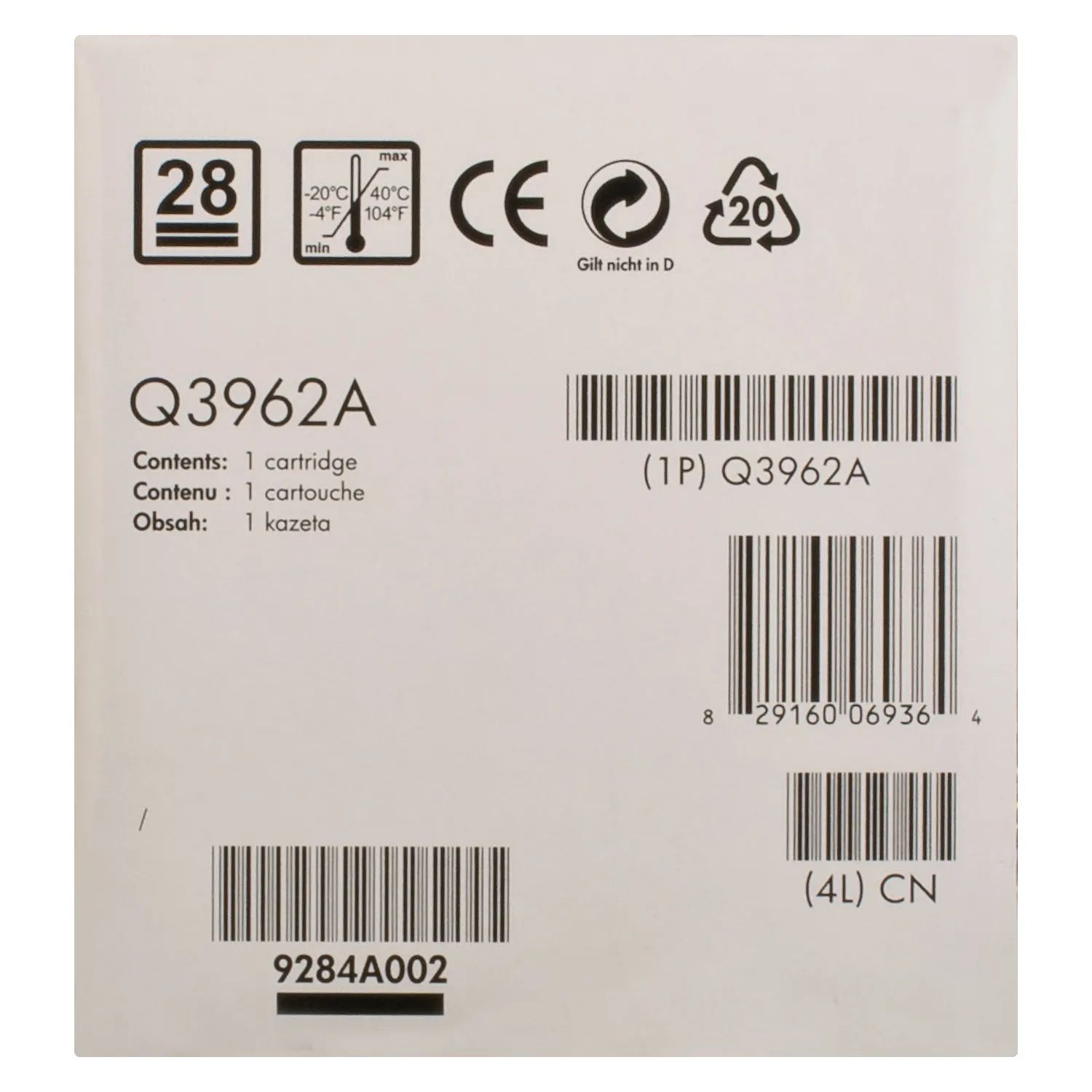 Оригінальний картридж Q3962A розроблений компанією HP, яка гарантує якісний друк протягом всього ресурсу - 4000 сторінок. Картридж 122A жовтий HP (Q3962A) відноситься до групи оригінальних витратних матеріалів, єдиним мінусом яких є висока вартість.