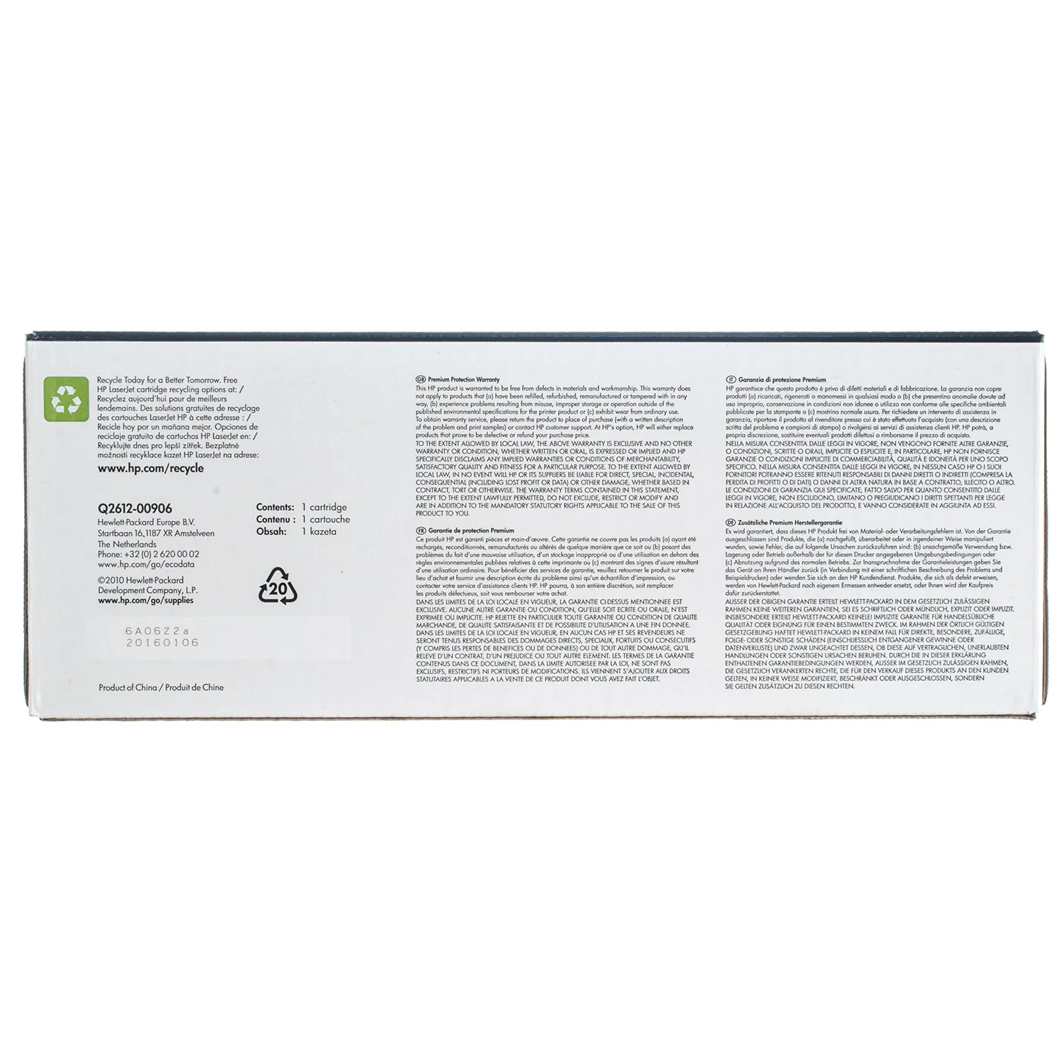 Оригінальний картридж Q2612A розроблений компанією HP, яка гарантує якісний друк протягом всього ресурсу - 2000 сторінок. Картридж 12A чорний HP (Q2612A) відноситься до групи оригінальних витратних матеріалів, єдиним мінусом яких є висока вартість.