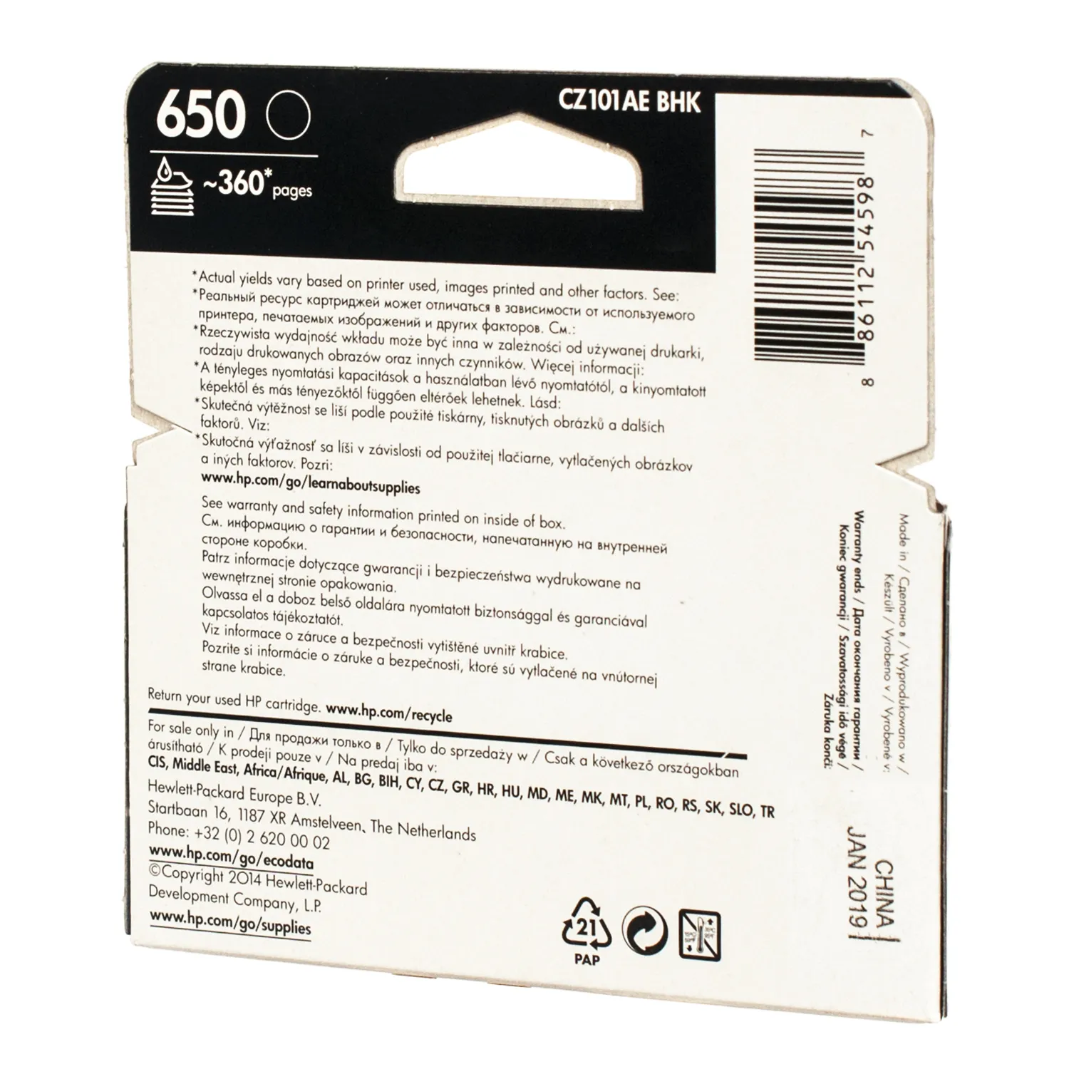 Картридж №650 чорний HP (CZ101AE) опис: