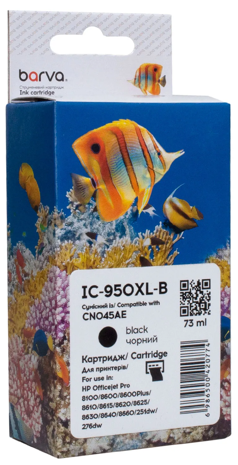 Загалом, струменевий картридж BARVA - це вигідна альтернатива оригінальним витратним матеріалам, яка поєднує в собі зручність використання, високу якість друку та надійність. Важливо! Перед тим, як замовити Картридж сумісний HP 950XL (CN045AE/CN049AE) 2300 арк, чорний Barva (IC-950XL-B), уважно перевірте його сумісність із вашим пристроєм друку.