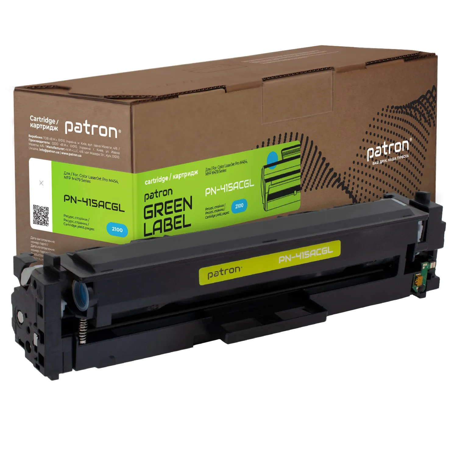 Ми потурбувалися про те, щоб упаковка картриджа була не лише екологічною, функціональною, мала мінімально можливі фізичні розміри, але і містила усю необхідну інформацію. На зеленій етикетці знаходиться інформація про картридж, його сумісність з друкувальними пристроями, номер партії, дата виготовлення, контакти виробника, а також номер телефону безкоштовної гарячої лінії для українських споживачів.