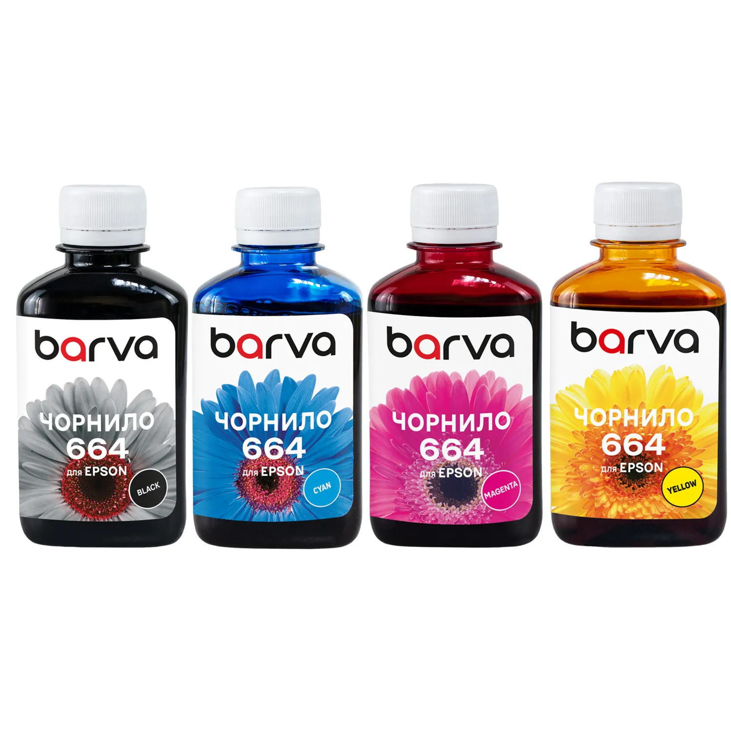 Комплект чорнил для Epson 664 спеціальні 4x180 г, водорозчинні, BK/C/M/Y Barva (E-L100-180-MP) опис: