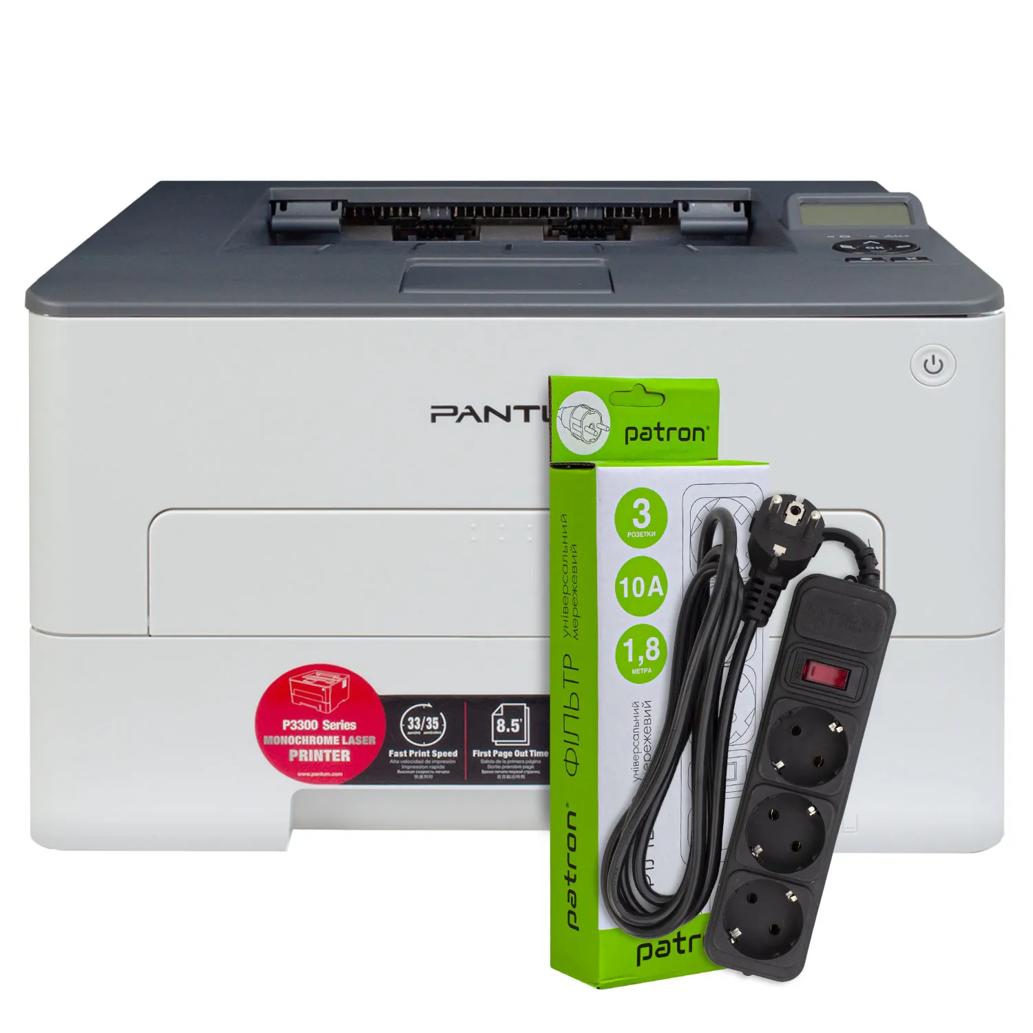 Принтер лазерний P3300DN A4 Pantum (P3300DN) + Фільтр мережевий 3 розетки Patron (SP-1033)