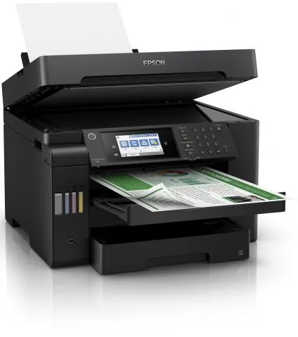 Особенность всех устройств серии «Фабрика печати Epson» – это печать без картриджей. Вместо картриджей в Epson L15150 использует фронтальные чернильные емкости.
