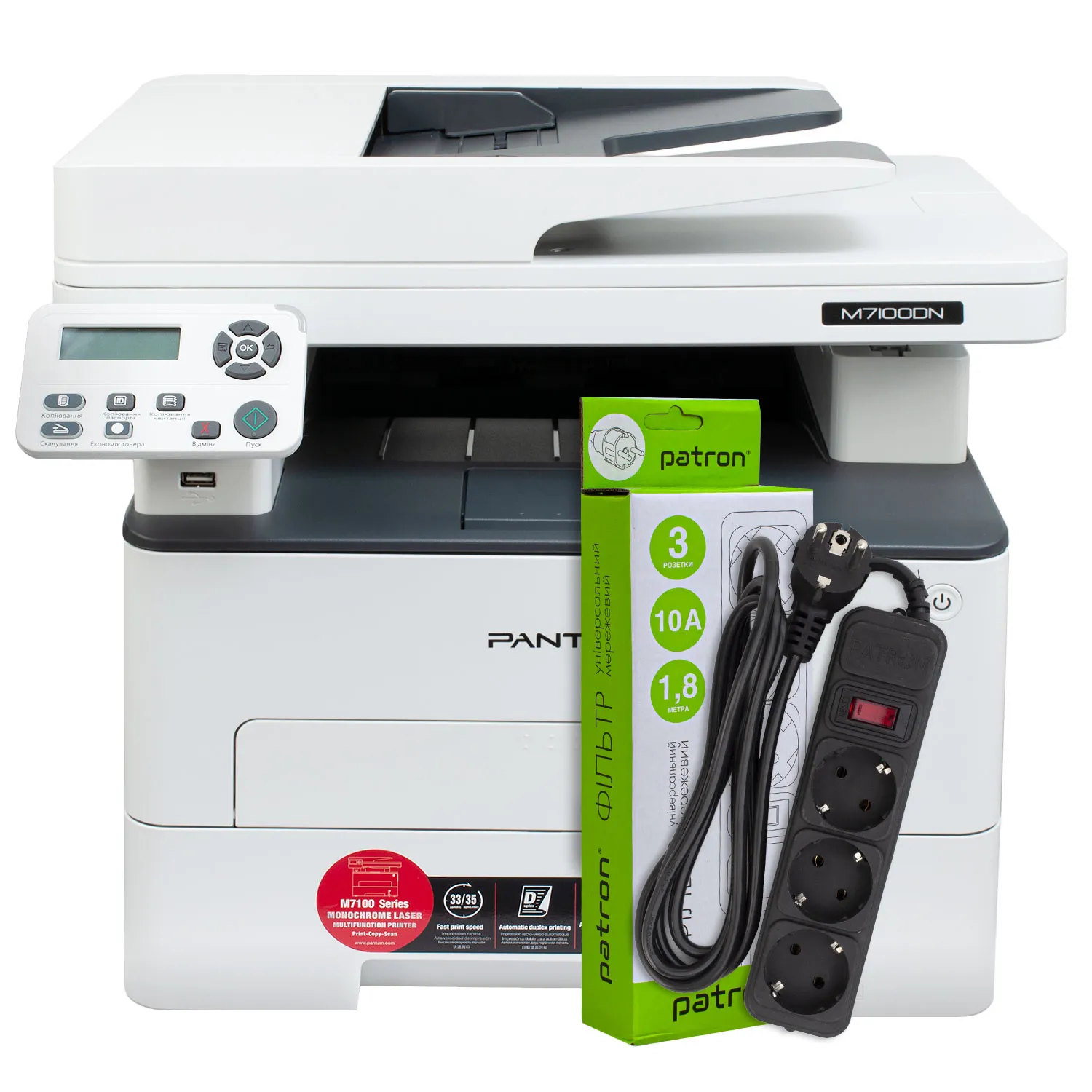 МФУ M7100DN А4 Pantum (M7100DN) + Фильтр сетевой 3 розетки Patron (SP-1033)