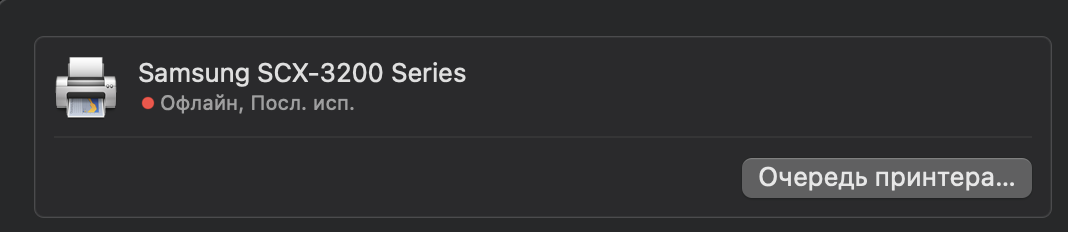 ●    Выберите принтер из списка слева, затем нажмите "Очередь принтера".