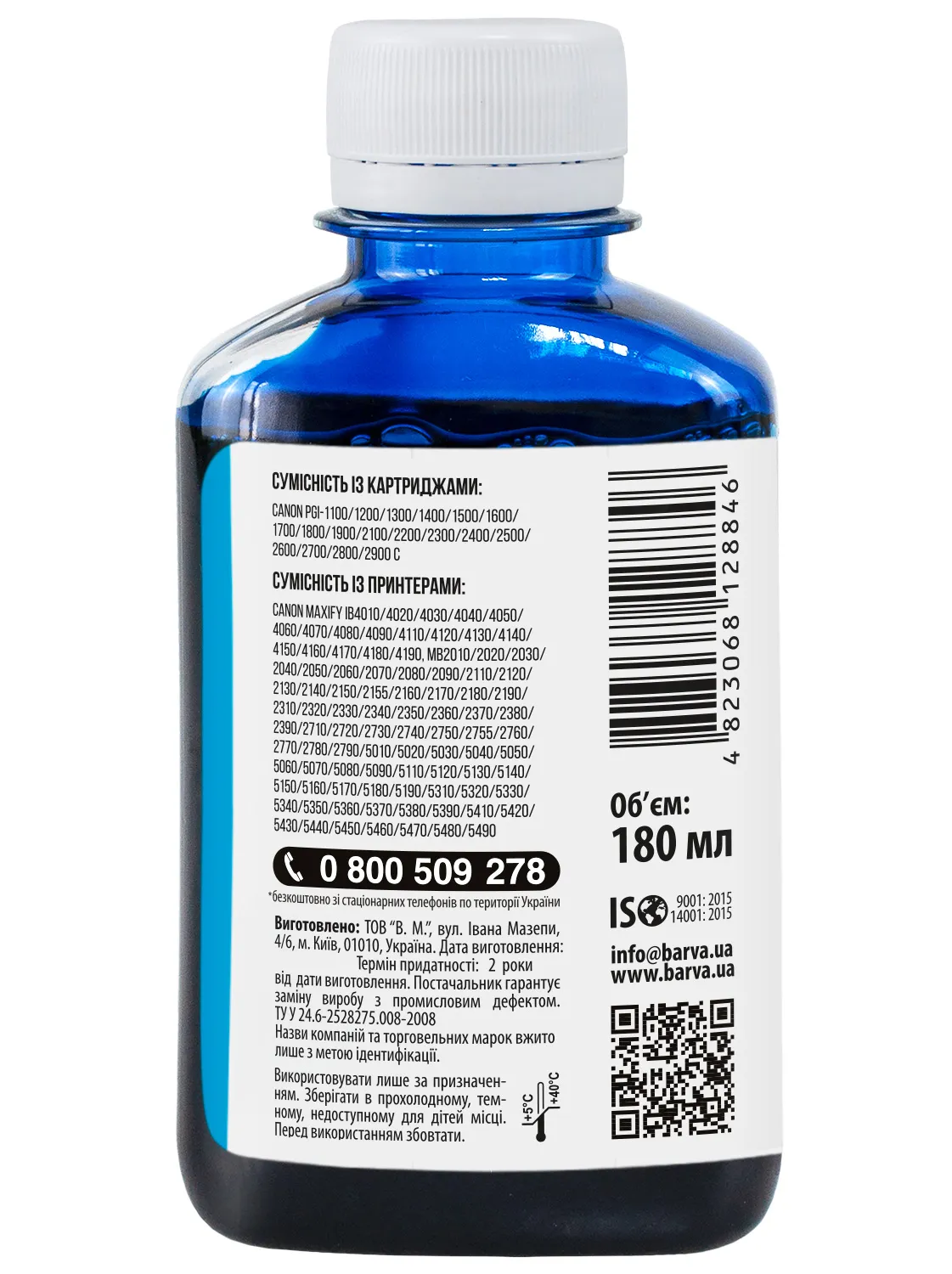 Данная краска для принтера Canon Barva имеет фасовку – 180 мл: