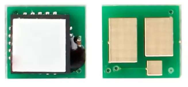 Что такое чип для картриджа? Это небольшая по размеру микросхема, в которую вшита информация о ресурсе самого картриджа, обеспечен функцией обмена данными с принтером. Проще говоря, благодаря чипу аппарат может посчитать количество отпечатанных страниц. В момент, когда счётчик страниц подошел к концу, вы увидите предупреждение о том, что картридж закончился и его необходимо заменить, даже если в бункере картриджа остался неиспользованный тонер.
