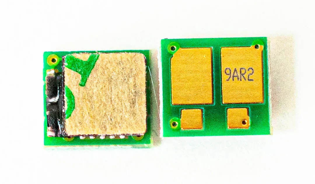 Что такое чип для картриджа? Это небольшая по размеру микросхема, в которую вшита информация о ресурсе самого картриджа, обеспечен функцией обмена данными с принтером. Проще говоря, благодаря чипу аппарат может посчитать количество отпечатанных страниц. В момент, когда счётчик страниц подошел к концу, вы увидите предупреждение о том, что картридж закончился и его необходимо заменить, даже если в бункере картриджа остался неиспользованный тонер.