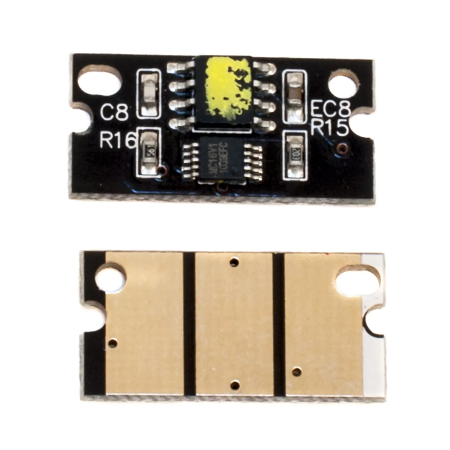 Что такое чип для картриджа? Это небольшая по размеру микросхема, в которую вшита информация о ресурсе самого картриджа, обеспечен функцией обмена данными с принтером. Проще говоря, благодаря чипу аппарат может посчитать количество отпечатанных страниц. В момент, когда счётчик страниц подошел к концу, вы увидите предупреждение о том, что картридж закончился и его необходимо заменить, даже если в бункере картриджа остался неиспользованный тонер.