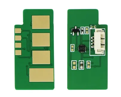 Что такое чип для картриджа? Это небольшая по размеру микросхема, в которую вшита информация о ресурсе самого картриджа, обеспечен функцией обмена данными с принтером. Проще говоря, благодаря чипу аппарат может посчитать количество отпечатанных страниц. В момент, когда счётчик страниц подошел к концу, вы увидите предупреждение о том, что картридж закончился и его необходимо заменить, даже если в бункере картриджа остался неиспользованный тонер.