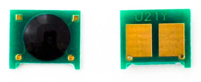 Что такое чип для картриджа? Это небольшая по размеру микросхема, в которую вшита информация о ресурсе самого картриджа, обеспечен функцией обмена данными с принтером. Проще говоря, благодаря чипу аппарат может посчитать количество отпечатанных страниц. В момент, когда счётчик страниц подошел к концу, вы увидите предупреждение о том, что картридж закончился и его необходимо заменить, даже если в бункере картриджа остался неиспользованный тонер.