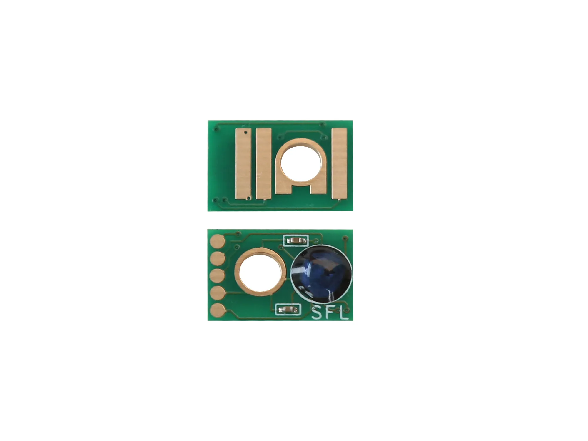 Что такое чип для картриджа? Это небольшая по размеру микросхема, в которую вшита информация о ресурсе самого картриджа, обеспечен функцией обмена данными с принтером. Проще говоря, благодаря чипу аппарат может посчитать количество отпечатанных страниц. В момент, когда счётчик страниц подошел к концу, вы увидите предупреждение о том, что картридж закончился и его необходимо заменить, даже если в бункере картриджа остался неиспользованный тонер.