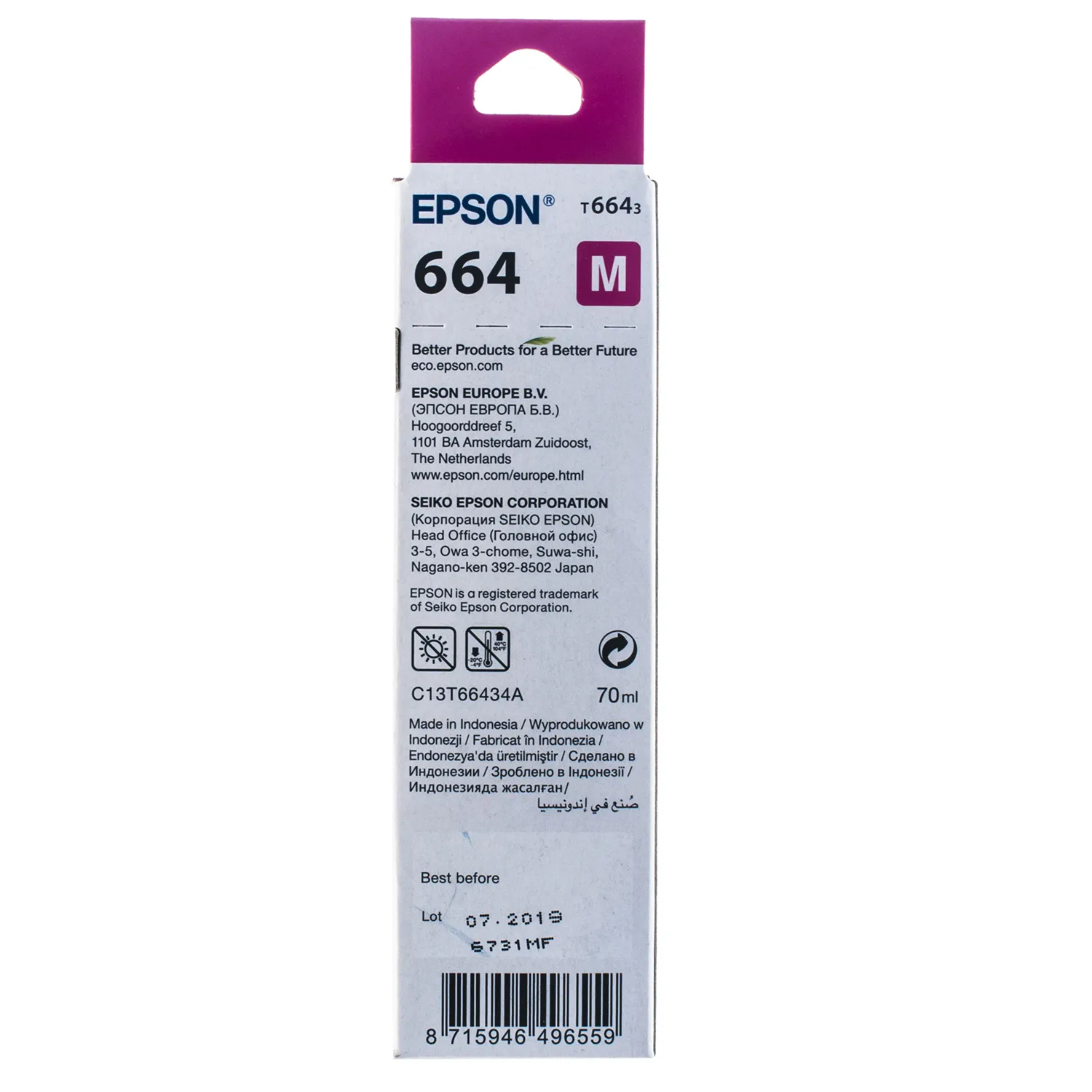 Чернила L100/L200 пурпурные, 70 мл Epson (C13T66434A) - лучшие товары для вашего принтера