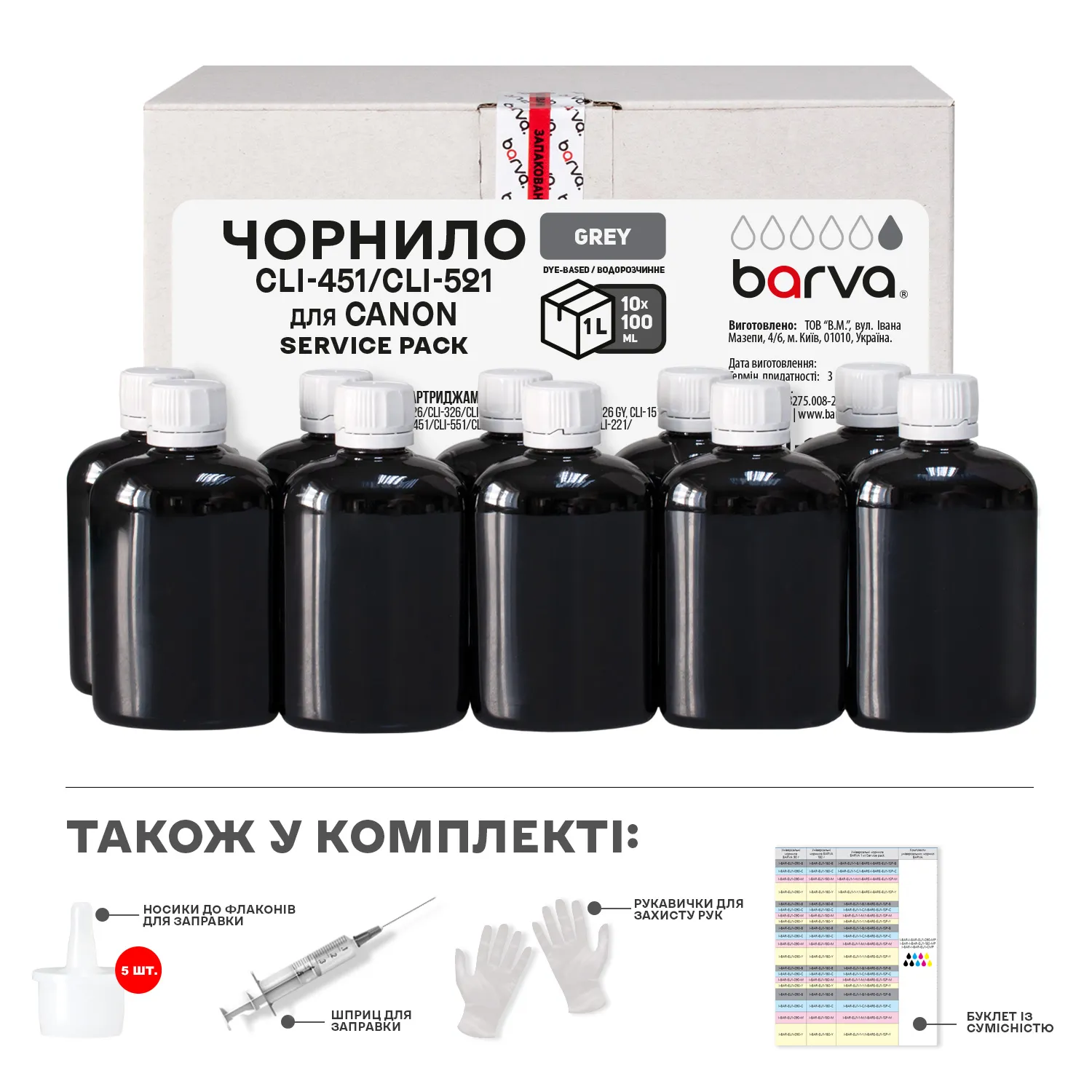 Чернила совместимые для Canon CLI-426/CLI-451/CLI-521 специальные 10x100 мл, водорастворимые, серые Service Pack Barva (C521-1SP-GY) - заказывайте на сайте patronservice.ua