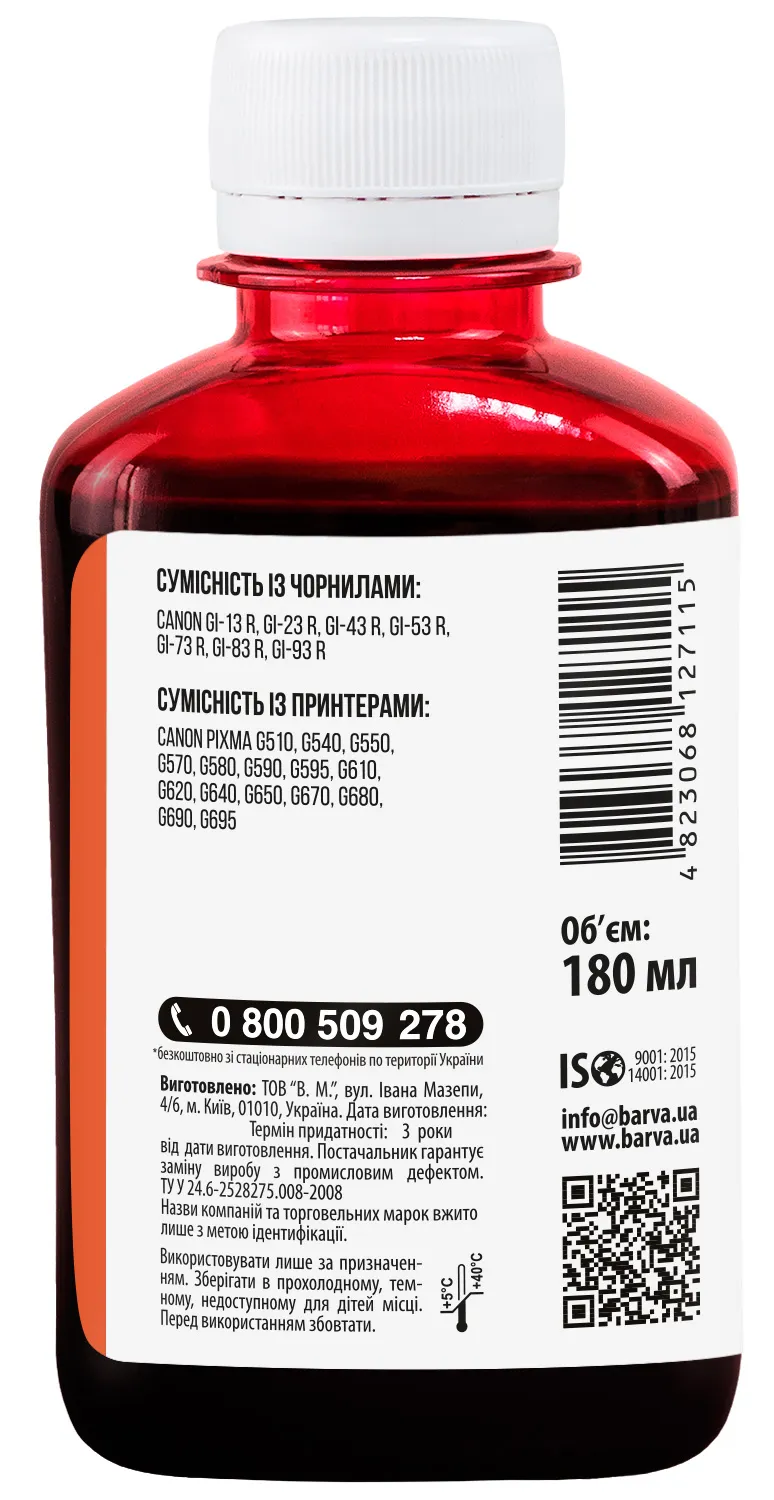 Данная краска для принтера Canon Barva имеет фасовку – 180 мл: