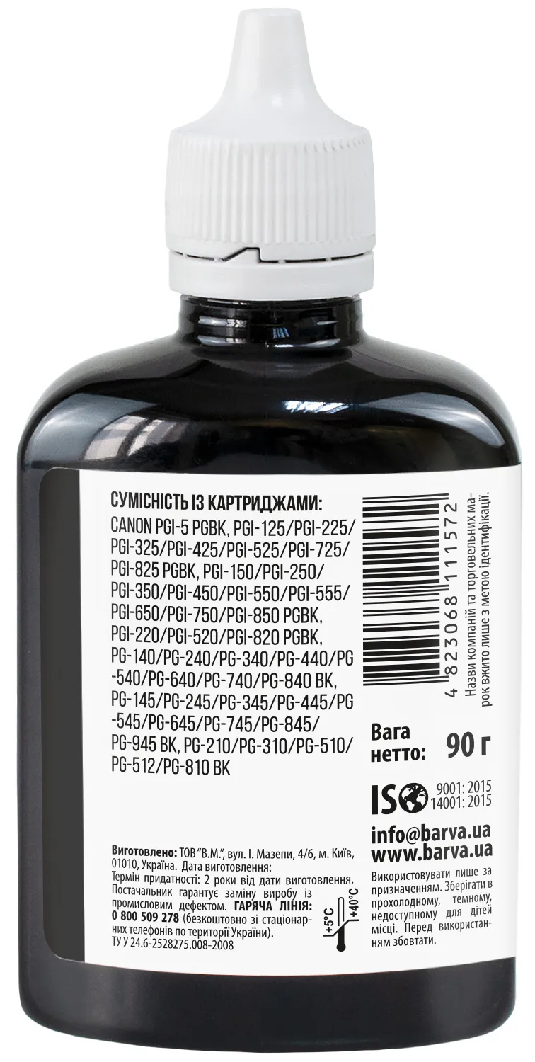 Украинская компания ООО «В.М.» занимается производством чернил под торговой маркой Barva уже много лет. На базе собственной лаборатории осуществляется как разработка новых формул, так и непрерывный контроль качества выпускаемой продукции. При производстве чернил производитель следует стандартам ISO 9001:2015 и ISO 14001:2015.