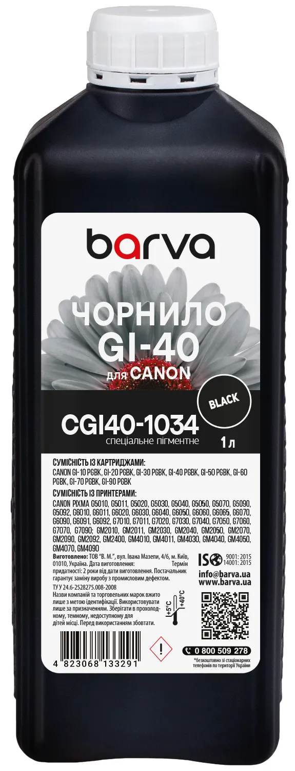 Вы можете купить Чернила для Canon GI-40 PGBK специальные 1 л, пигментные, черные Barva (CGI40-1034) в нашем интернет-магазине с доставкой по Киеву и всей Украине.