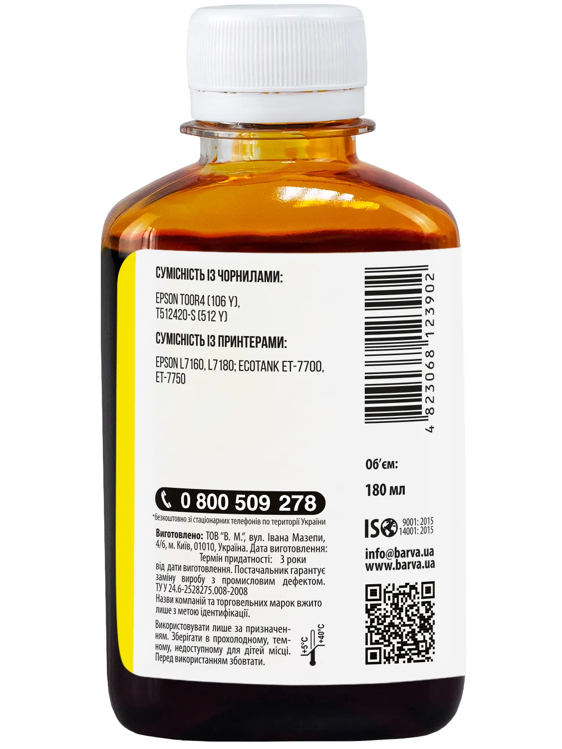 Вы можете купить Чернила совместимые для Epson 106 Y специальные 180 мл, водорастворимые, желтые Barva (E106-790) в нашем интернет-магазине с доставкой по Киеву и всей Украине.