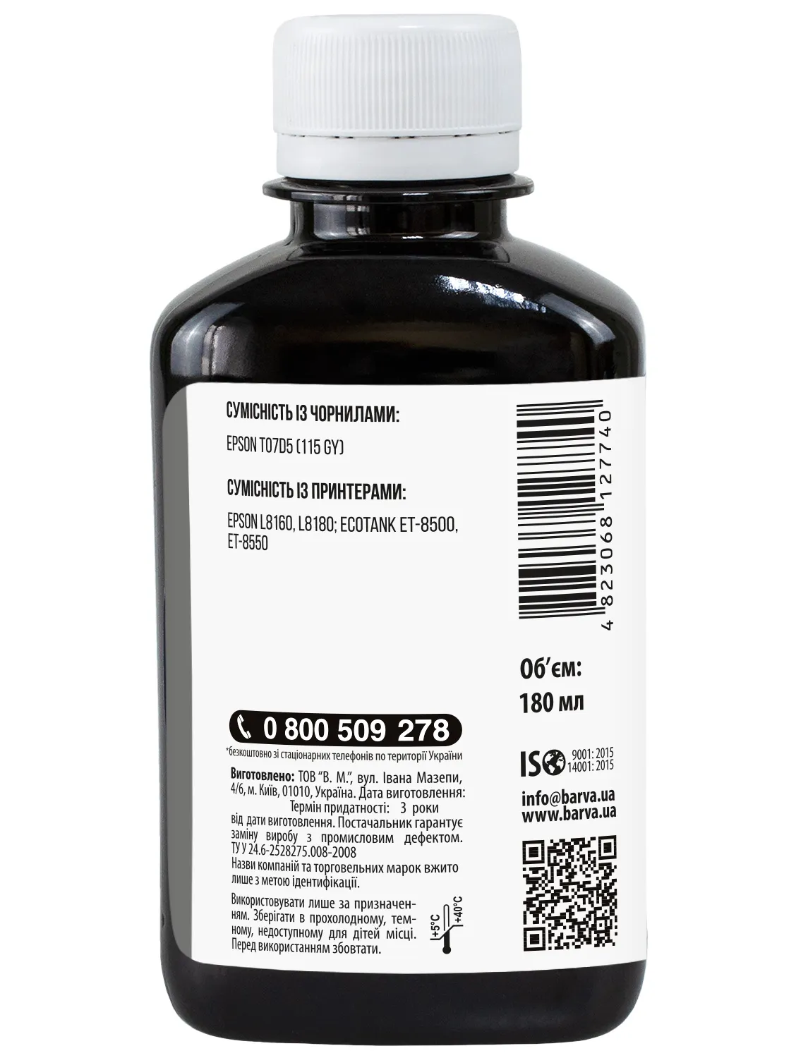 Украинская компания ООО «В.М.» занимается производством чернил под торговой маркой Barva уже много лет. На базе собственной лаборатории осуществляется как разработка новых формул, так и непрерывный контроль качества выпускаемой продукции. При производстве чернил производитель следует стандартам ISO 9001:2015 и ISO 14001:2015.