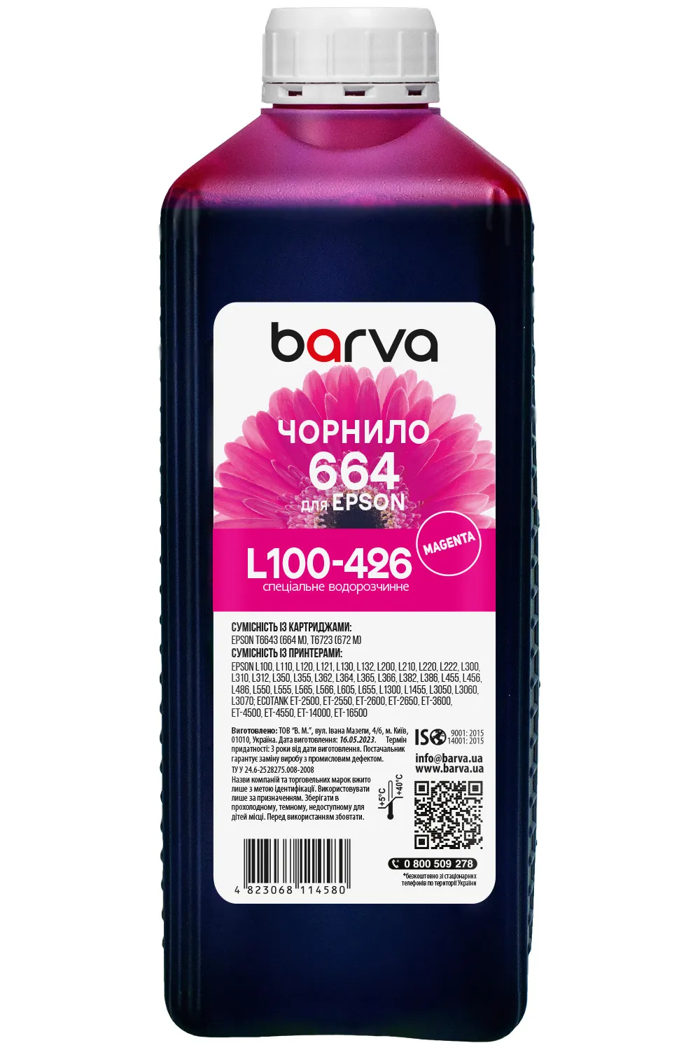 Украинская компания ООО «В.М.» занимается производством чернил под торговой маркой Barva уже много лет. На базе собственной лаборатории осуществляется как разработка новых формул, так и непрерывный контроль качества выпускаемой продукции. При производстве чернил производитель следует стандартам ISO 9001:2015 и ISO 14001:2015.