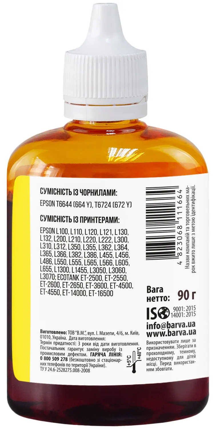 - Чернила совместимые для Epson 664 Y специальные 90 г, водорастворимые, желтые Barva (L100-404)