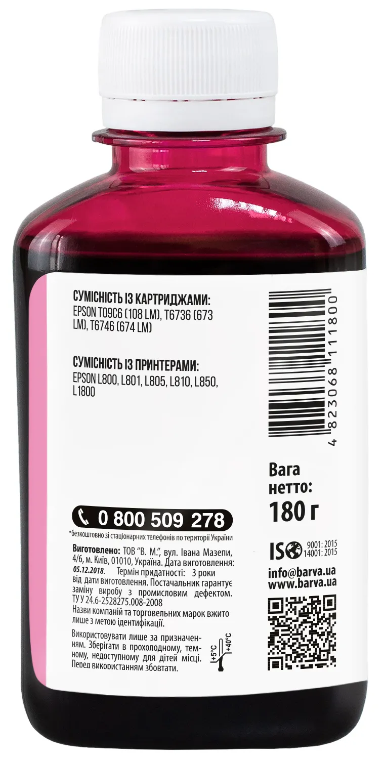 Чернила совместимые для Epson 673 LM специальные 180 г, водорастворимые, светло-пурпурные Barva (L800-419) - лучший выбор на сайте patronservice.ua