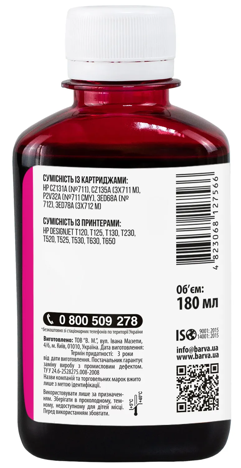 Украинская компания ООО «В.М.» занимается производством чернил под торговой маркой Barva уже много лет. На базе собственной лаборатории осуществляется как разработка новых формул, так и непрерывный контроль качества выпускаемой продукции. При производстве чернил производитель следует стандартам ISO 9001:2015 и ISO 14001:2015.