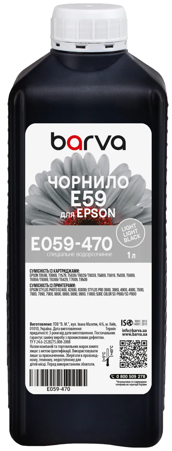 Вы можете купить Чернила для Epson T0599/T6039/T1579 специальные 1 л, водорастворимые, светло-светло-черные Barva (E059-470) в нашем интернет-магазине с доставкой по Киеву и всей Украине.