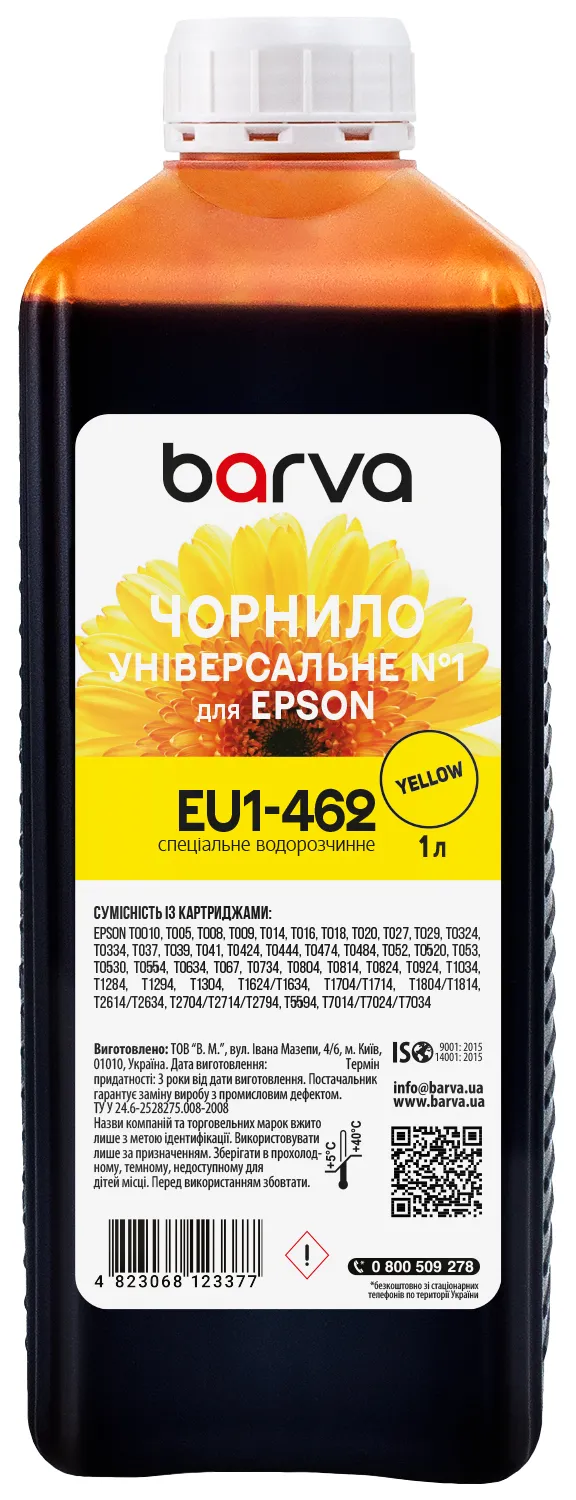 Чернила для Epson универсальные №1 1 л, водорастворимые, желтые Barva (EU1-462) - быстрая консультация по вашему заказу