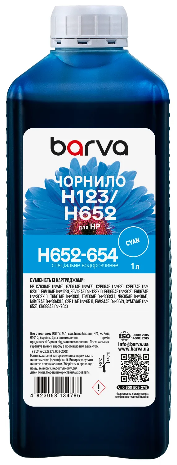 Чернила для HP 46/123/651/652 специальные 1 л, водорастворимые, голубые Barva (H652-654) - прекрасный выбор для вас