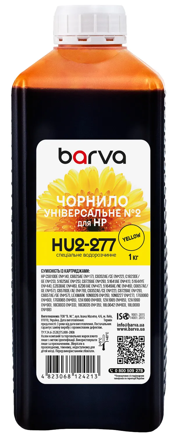 Вы можете купить Чернила для HP универсальные №2 1 л, водорастворимые, желтые Barva (HU2-277) в нашем интернет-магазине с доставкой по Киеву и всей Украине.