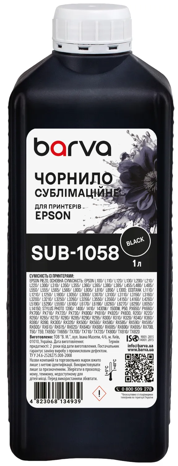 Вы можете купить Чернила сублимационные для настольных принтеров Epson 1 л, черные Barva (SUB-1058) в нашем интернет-магазине с доставкой по Киеву и всей Украине.