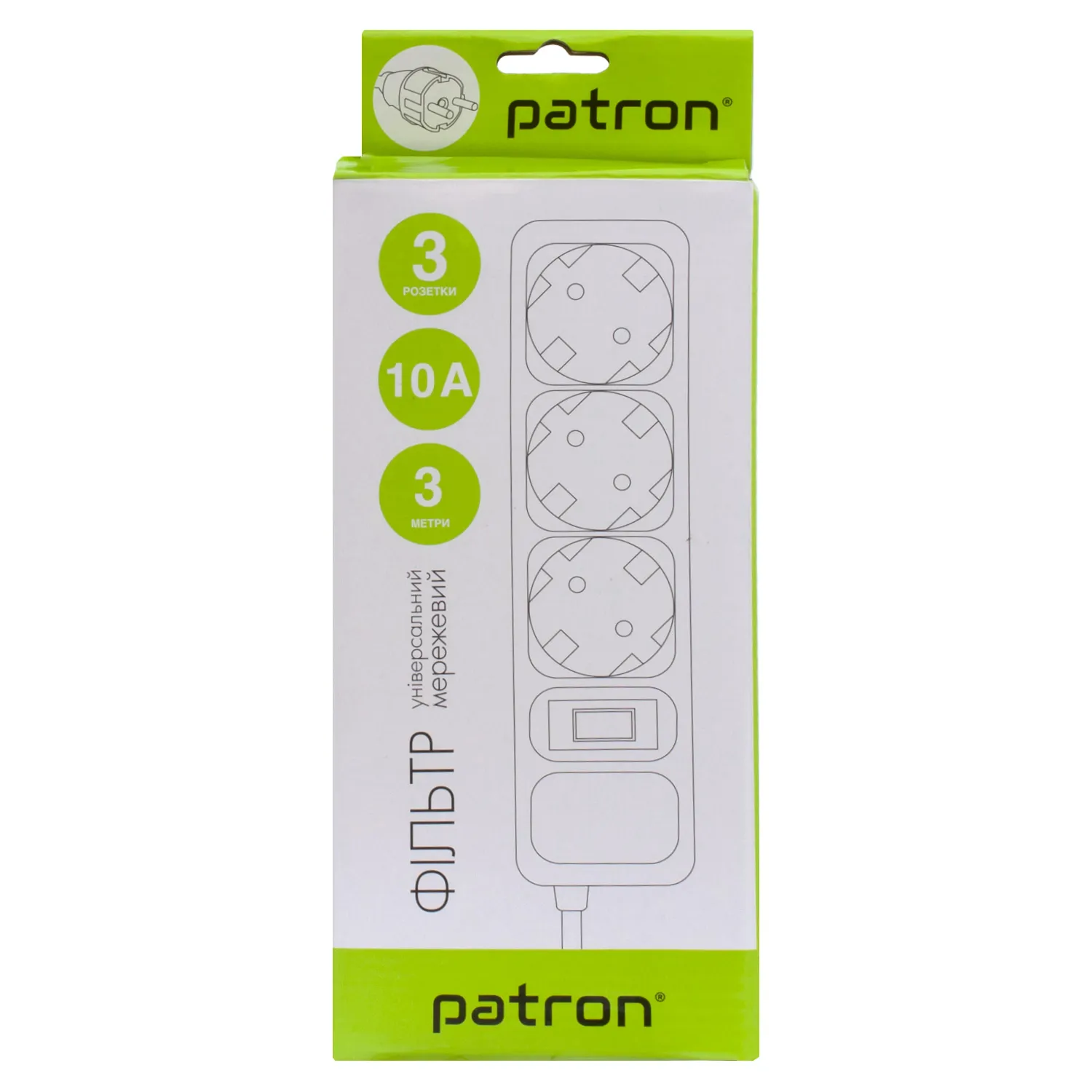 Фильтр сетевой 3 розетки, 1,8 м, 10 А, 250 В, 3*1мм2, черный Patron (SP-1032)