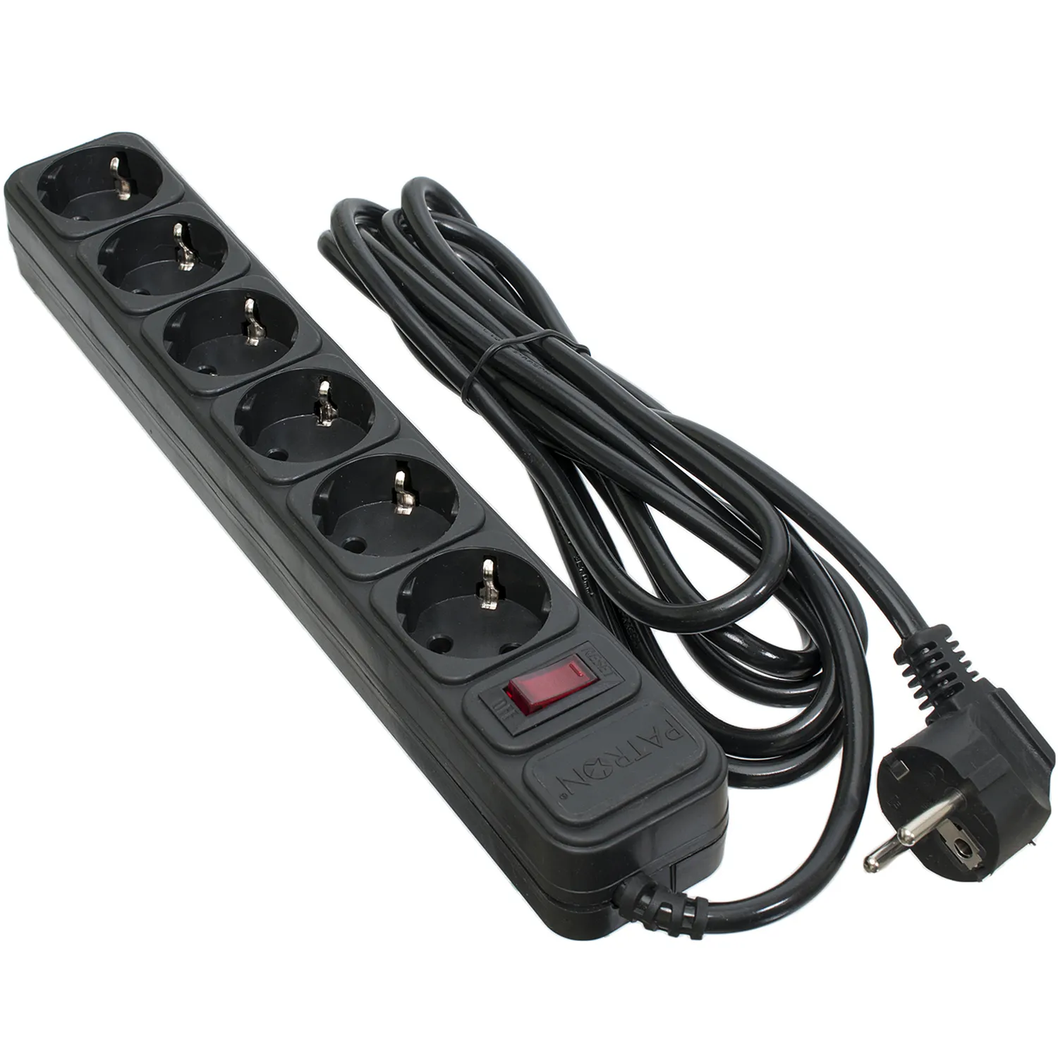 - Фильтр сетевой 6 розеток, 3 м, черный, 3*1мм2 Patron (SP-1063)