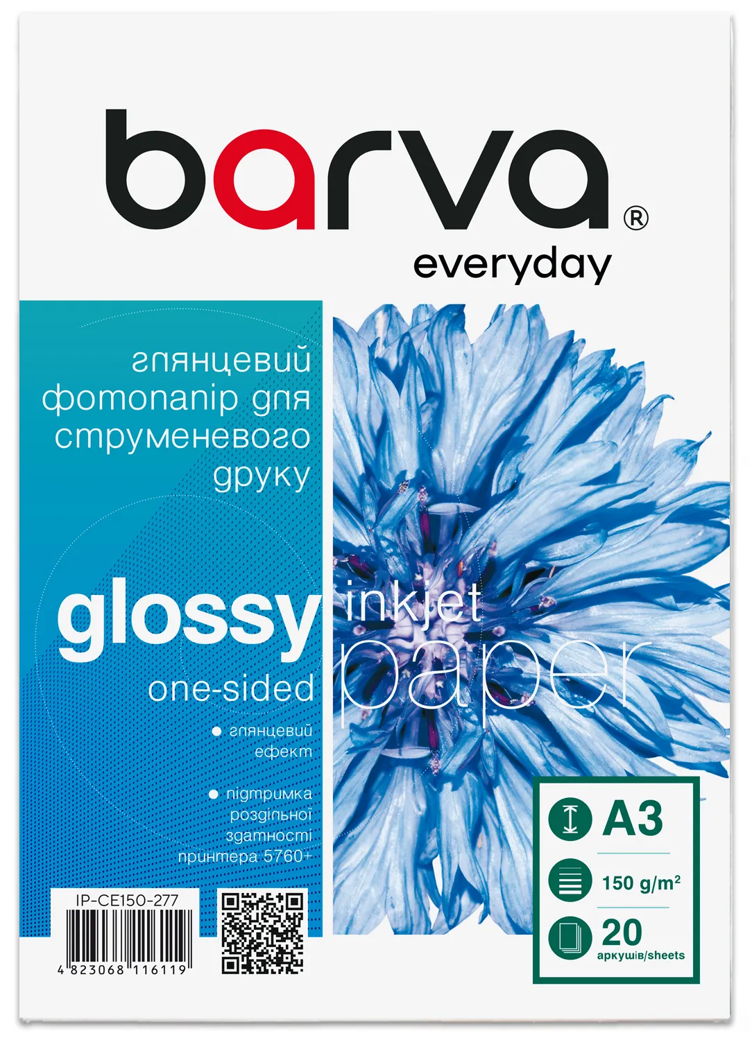 Фотобумага глянцевая 150 г/м2, A3, 20 л Everyday Barva (IP-CE150-277) - покупайте с гарантией