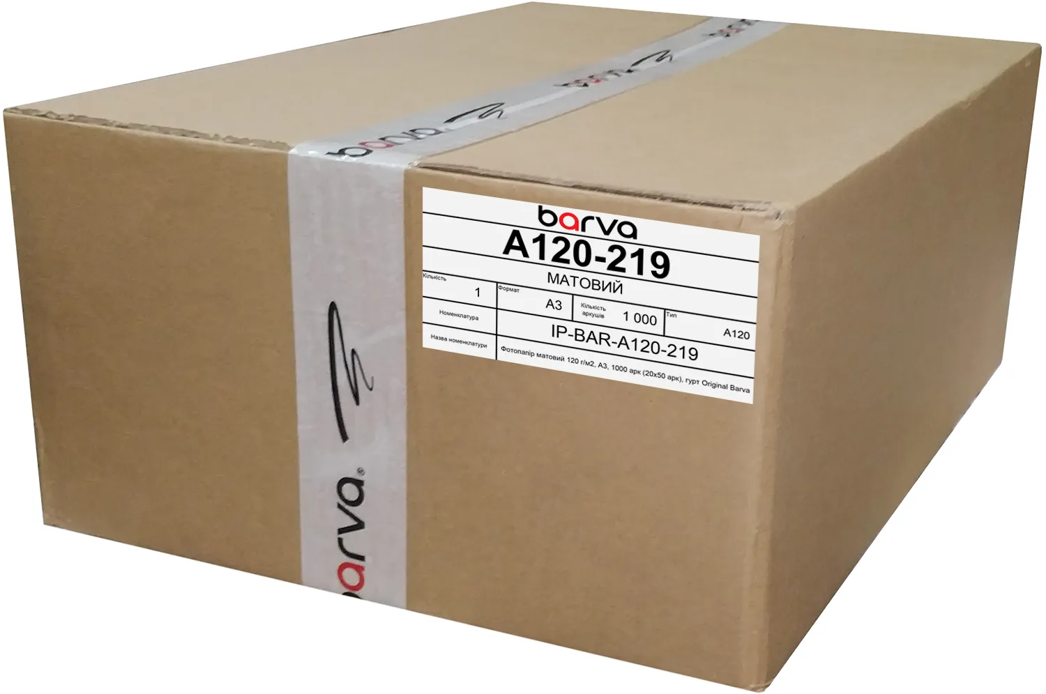 - Фотобумага матовая 120 г/м2, A3, 1000 л (20х50 л), bulk Original Barva (IP-A120-219)