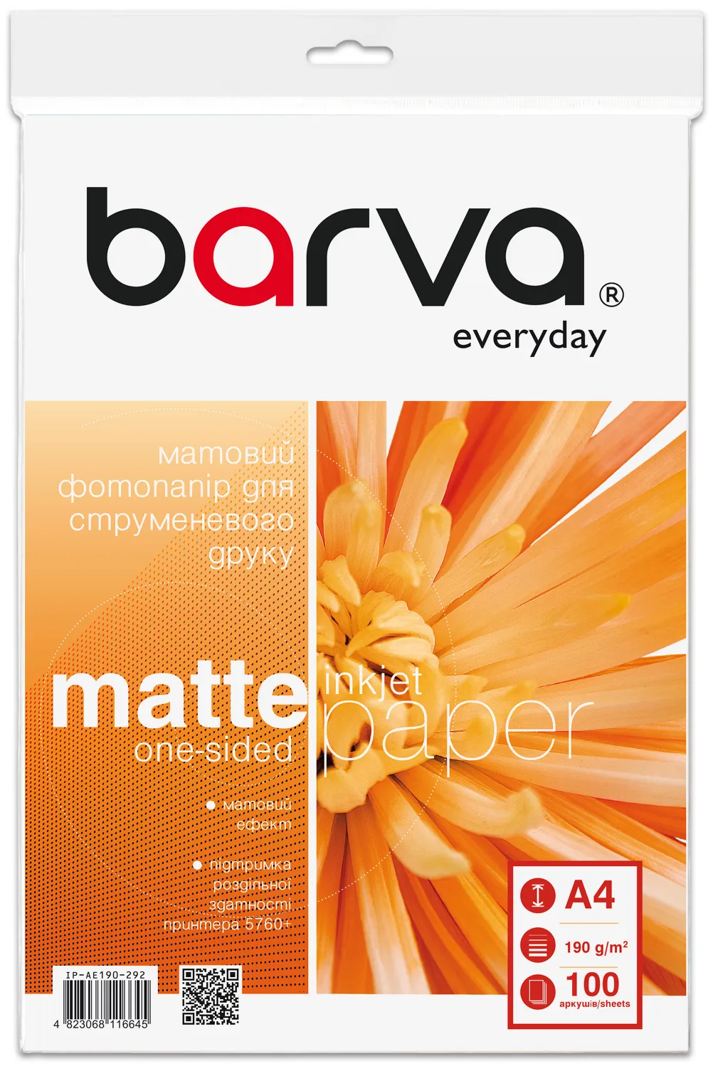 Фотобумага матовая 190 г/м2, A4, 100 л Everyday Barva (IP-AE190-292) - заказывайте на сайте patronservice.ua